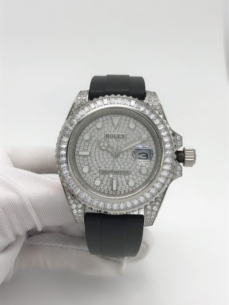 劳力士 YM 游艇表款,表壳镶嵌满钻,表圈饰有星形图案,直径 40 毫米。