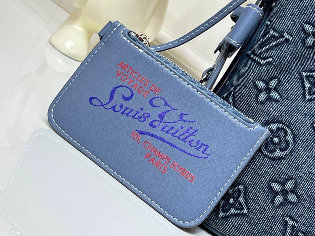 M15130 M12925 Relief Denim Louis Vuitton incorporates the elements of LV Romance to convey a dynamic and energetic vibe. In the 2025 early autumn collection, this All In BB handbag is passionately launched. The classic Monogram and Damier patterns blend together. The delicate cowhide body is embellished with signature locks and Bloom decorations. The ample space can easily accommodate daily necessities, and the detachable zipper bag ensures that small items are safely carried around. Dimensions: 16x18x12cm