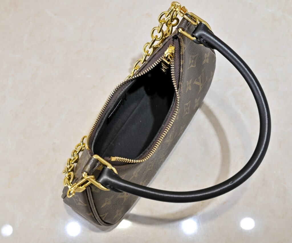 M25223 This Catchy small handbag is crafted with canvas and leather trimmings, paying homage to the brand’s classic Monogram pattern, creating another elegant option. Its sleek design makes it easy to carry all your daily essentials. The dual sliding straps allow for convenient adjustment of the bag’s shape, and the detachable metal chain and key-shaped decoration complement each other. Dimensions: 24.0 x 10.0 x 6.0 cm (length x height x width)