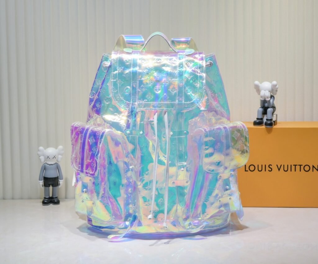 Exclusive Real Shots – Upgraded Version ‼️ Model M53286 M41379 Transparent and Iridescent! The CHRlSTOPHER Large Backpack showcases the forward-thinking vision of Louis Vuitton Men’s Artistic Director Virgil Abloh: a collision and intertwining of personal youthful energy and Louis Vuitton’s classic elegance. Made of Monogram-printed PVC material, its large size and bold rainbow hues are eye-catching, achieving a clever fusion of fashion and practicality. First unveiled in Autumn/Winter 2004, its large size, inspired by hiking backpacks, is ideal for travel and weekend getaways. The large outer pocket is highly practical, while metal studs and LV monogram accents highlight the brand’s essence. With its extra-large capacity, one backpack can hold everything you need for a long trip. Dimensions: 44x49x22cm.