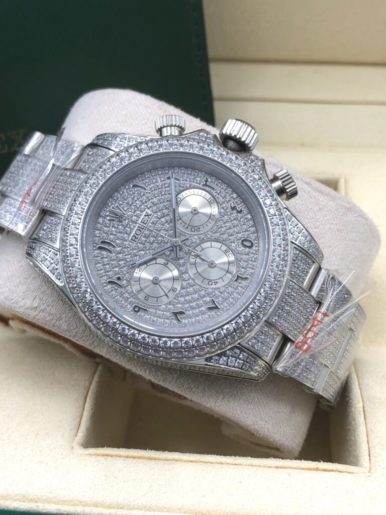Rolex New Model Six-Pointer Daytona with Arabic numerals and full diamonds, size 40mm