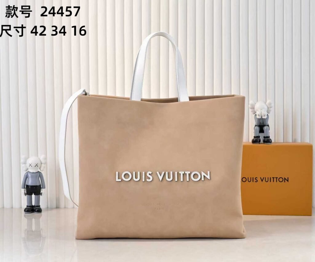 M24457 khaki, black and white check pattern, purple, grass green, pink, black, orange, blue, green, grey, old check pattern, check pattern, black crocodile print, orange crocodile print ✔️ This medium-sized handbag of the Shopper is inspired by the Louis Vuitton shopping bag. It writes the Louis Vuitton and Maison Fondée En 1854 logos on the soft cowhide leather, and is equipped with a top handle and a detachable shoulder strap. Size: 42x34x16cm