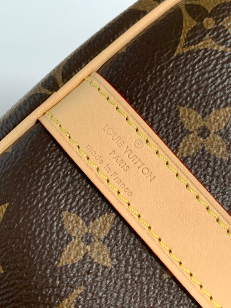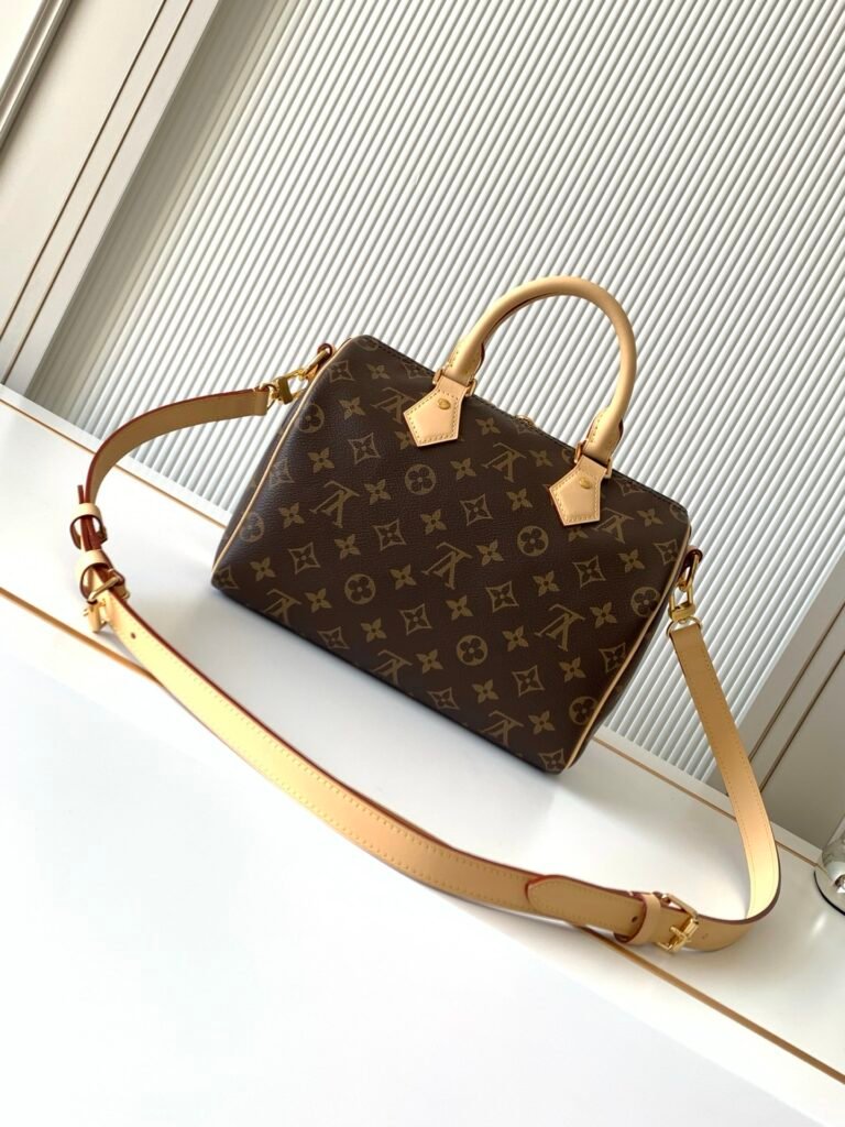 【Full Steel Golden Hardware MB163c01 Code Changer Chip】Specialized set packaging included. Model number M46977 Speedy series handbag. Originally designed for travelers, this Speedy Bandoulière 25 handbag pays tribute to the booming subway system of the 1930s. This Speedy Bandoulière 25 handbag features Monogram canvas recreating the iconic design, with embossed leather handles, engraved locks and detachable straps to maintain classic details, making it a great choice for urban travel. Dimensions: 25 x 19 x 15 cm (length x height x width). Monogram coated canvas with leather trim. Interior lining: metal parts. Double zippers, lock, and inner pocket. Space can accommodate 7.9-inch tablets, card bags, and lipsticks, etc. Shoulder strap: detachable and adjustable. Half length: 46.5 cm. Adjustable half length to: 55.0 cm. Handle: double handles.