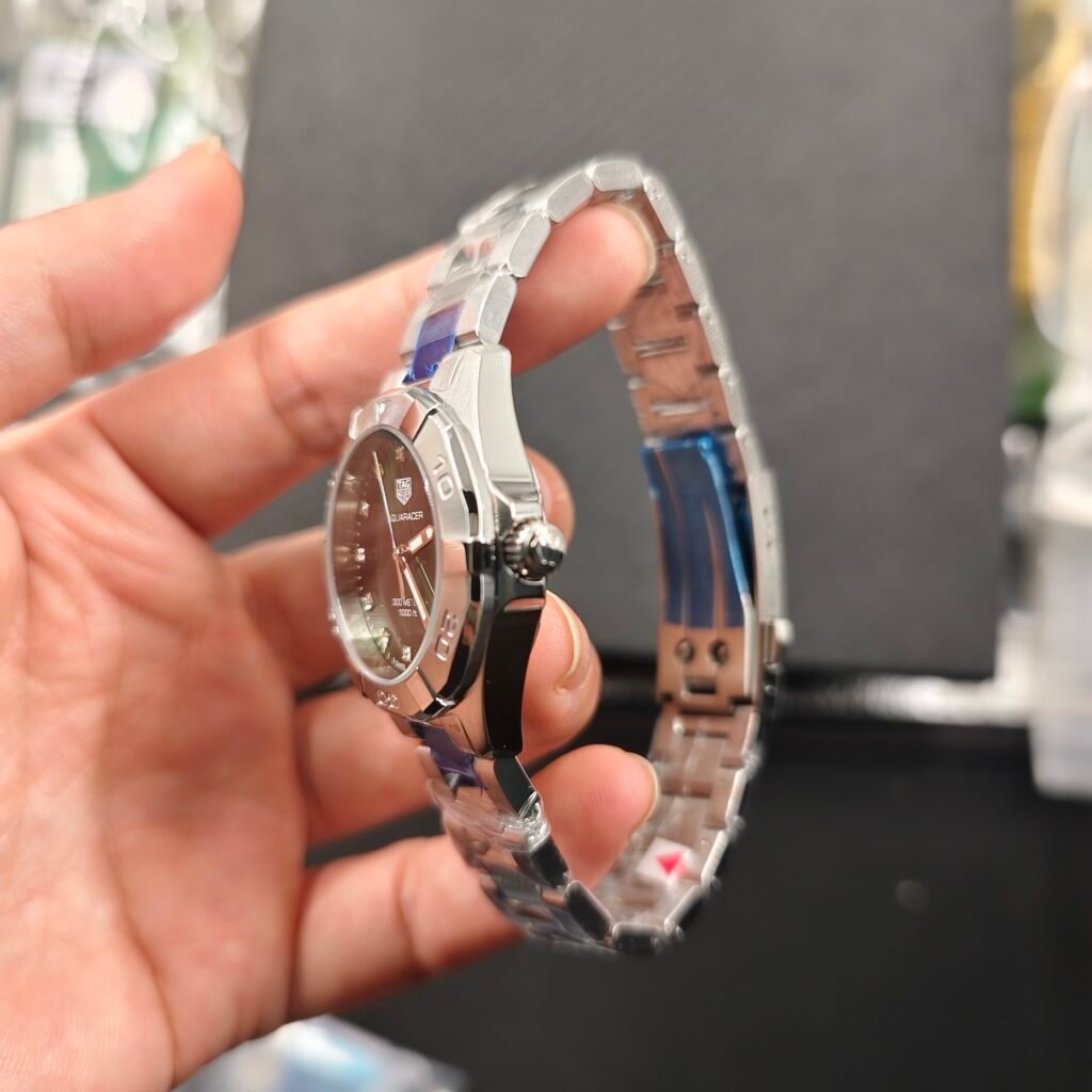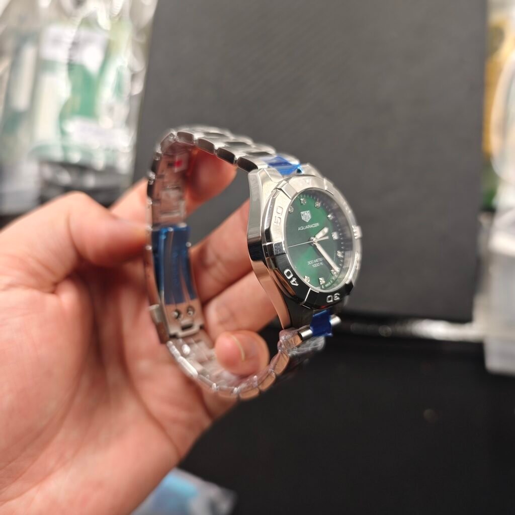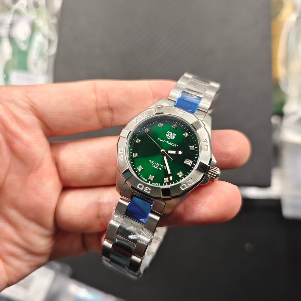 A luxury edition Aquaracer Lady with 11 diamonds (0.11 CT) hour markers on a gorgeous green dial. The 32mm quartz watch is elegant yet loaded with sports watch features.