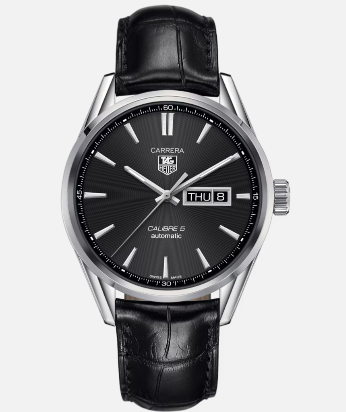 Swiss-made, this bold TAG Heuer Carrera is an aesthetic 41 mm watch. This model features a Steel case and a Calibre 5 Automatic movement.